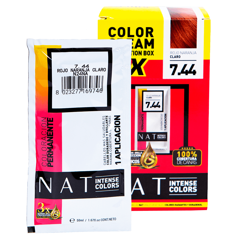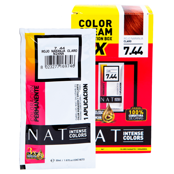 Tintura Nat Intense Color 7.44 Rojo Naranja Claro 50 ml (x sachet)