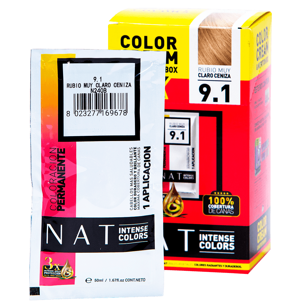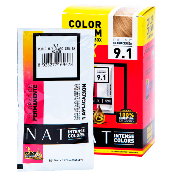 Tintura Nat Intense Color 9.1 Rubio Muy Claro Ceniza 50 ml (x sachet)